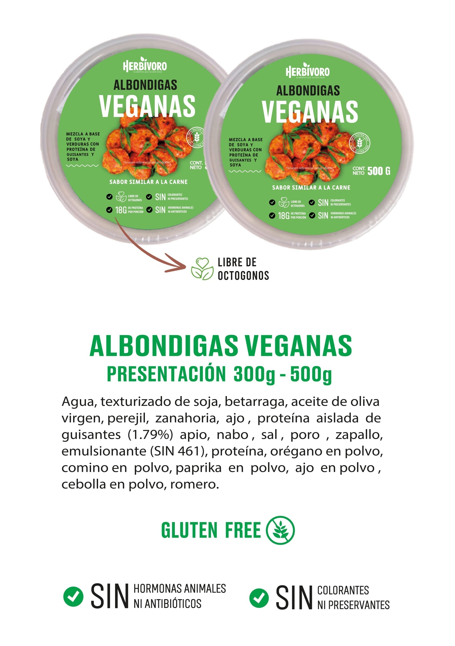 Albóndiga vegana sabor carne congelada Herbivoro taper 500g