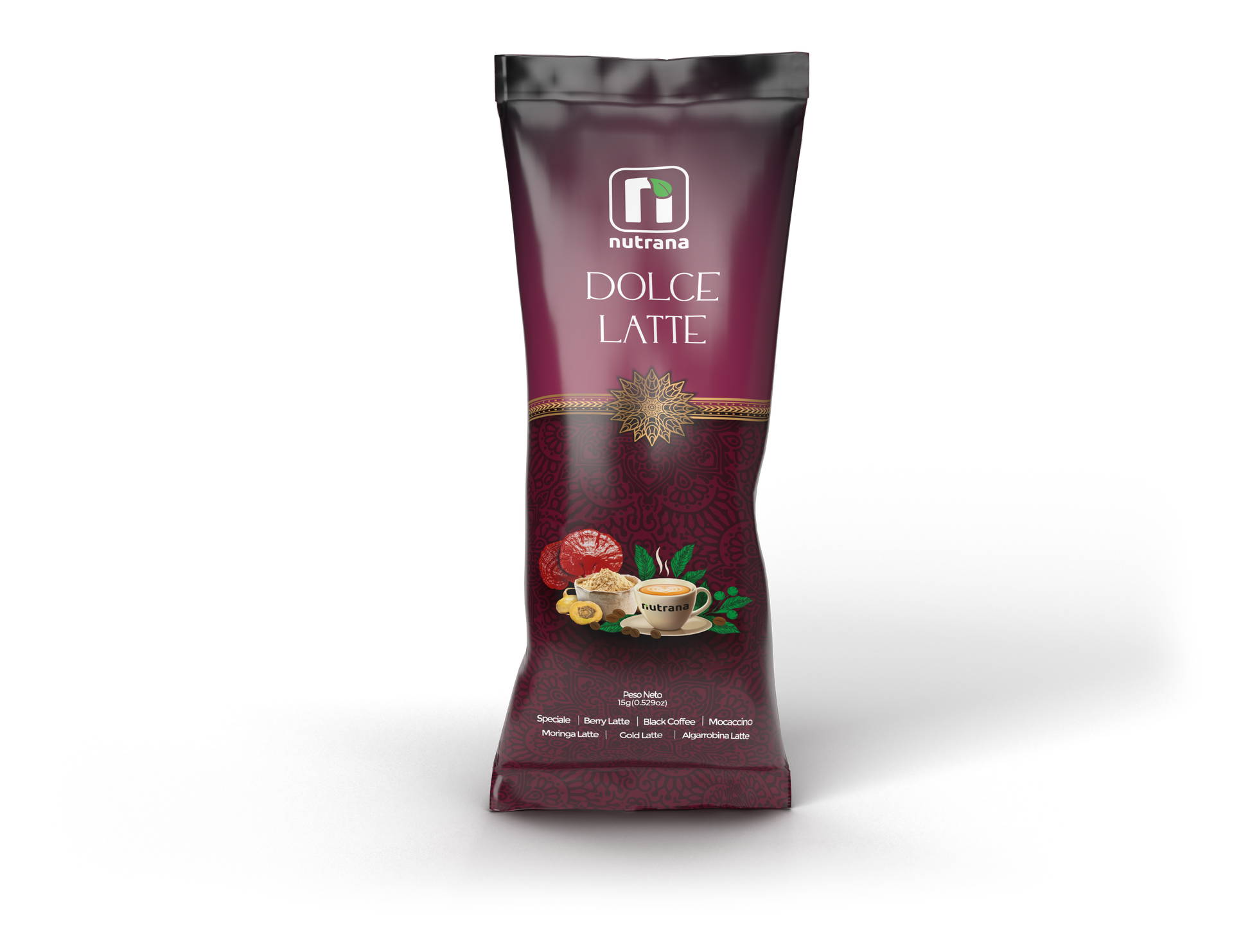 Dolce Latte Café, Maca, Ganoderma y Leche Vegetal Nutrana 375g (25 Sachets)