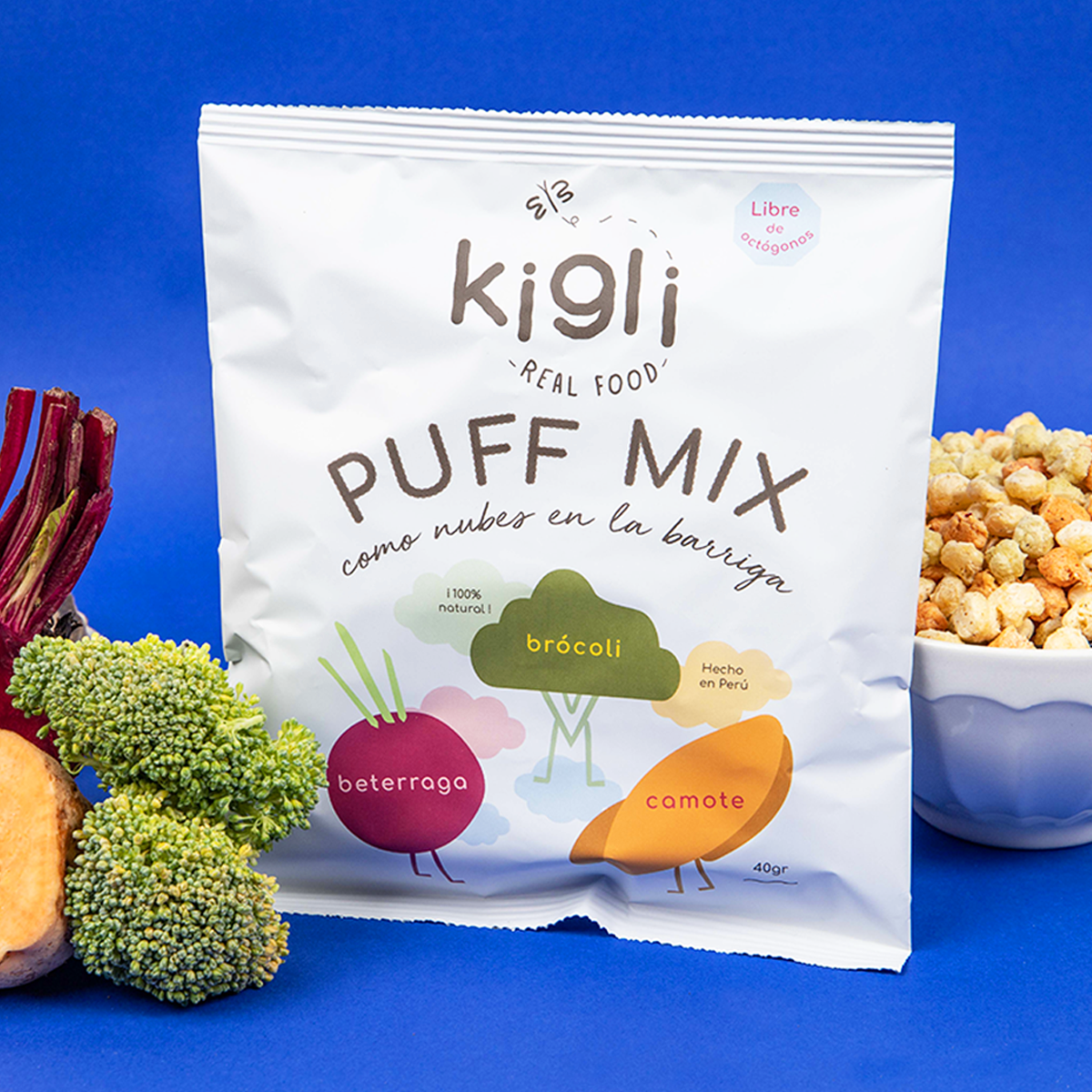 Recuerda que el Kigli puff tiene alto contenido de hierro y proteínas que aportan al desarrollo integral de tu pequeño.